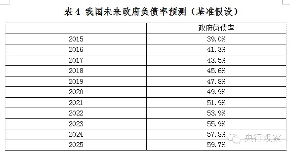 根据国际货币基金组织对政府负债率的分析框架,我们对我国政府未来的负债率作了一个测算,这里的政府包括中央政府和地方政府。